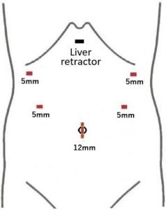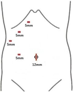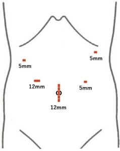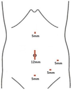 【腹腔鏡下右副腎腫瘍手術における切開創】